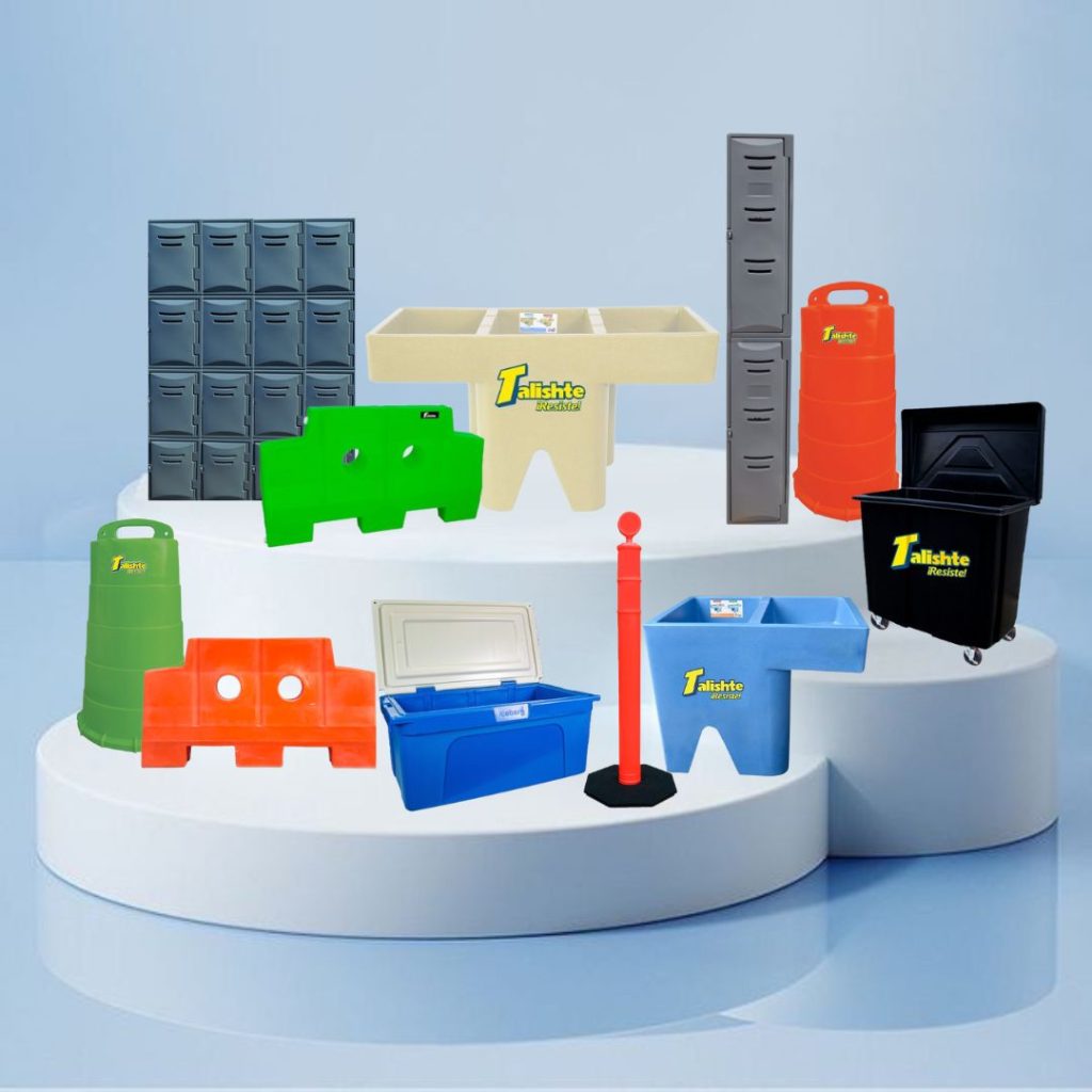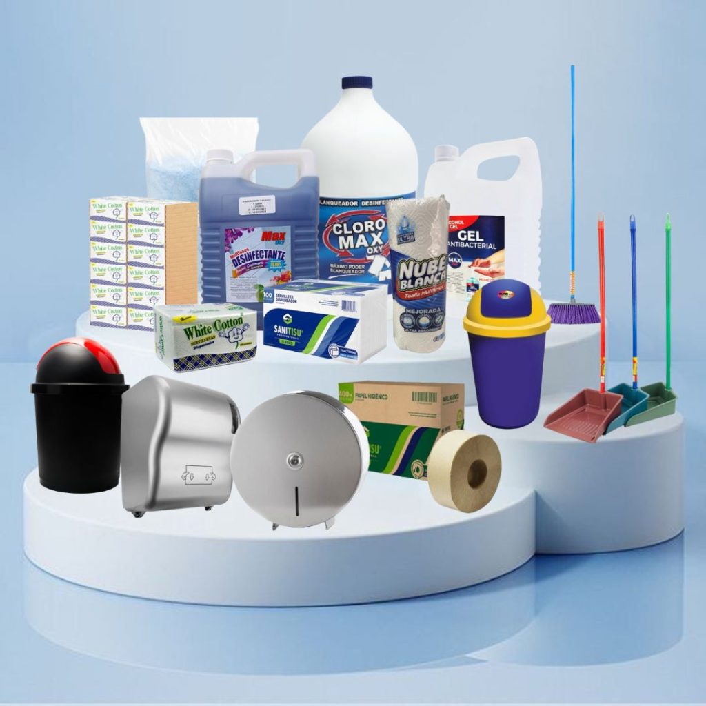 Productos plásticos duraderos para el mantenimiento y la higiene de espacios.